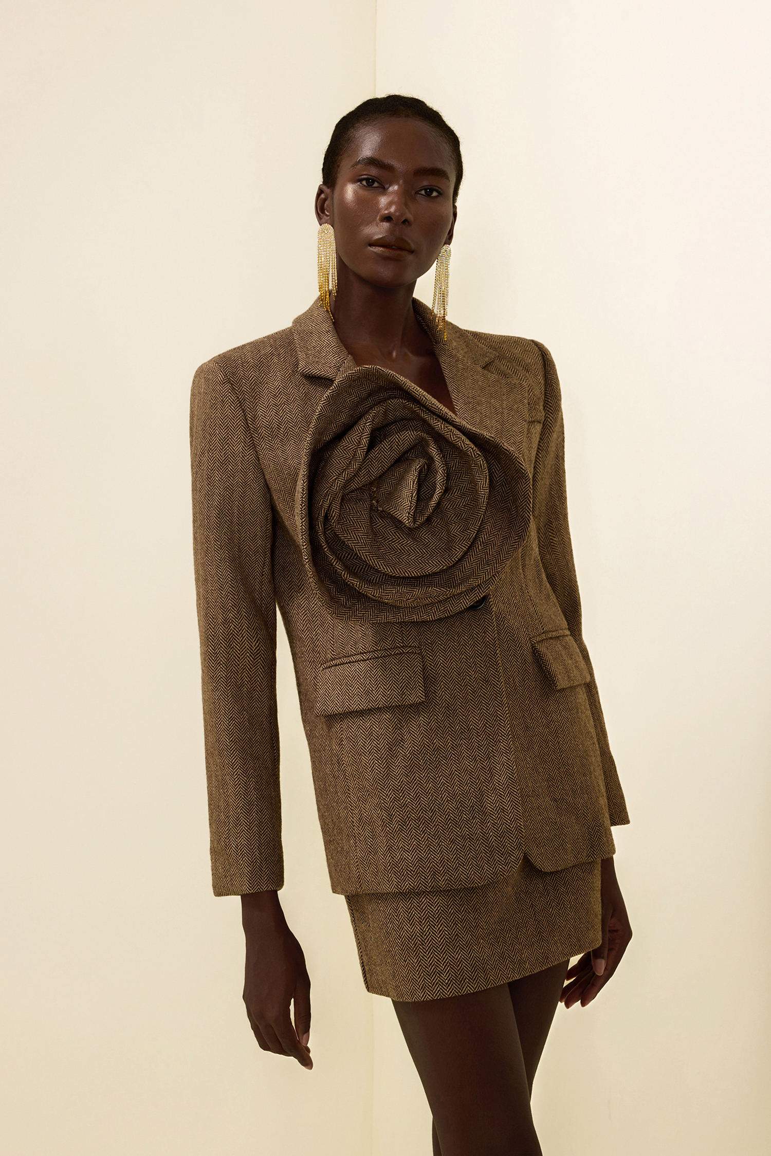 - 3D floral, solid color, coffee, long sleeve, blazer